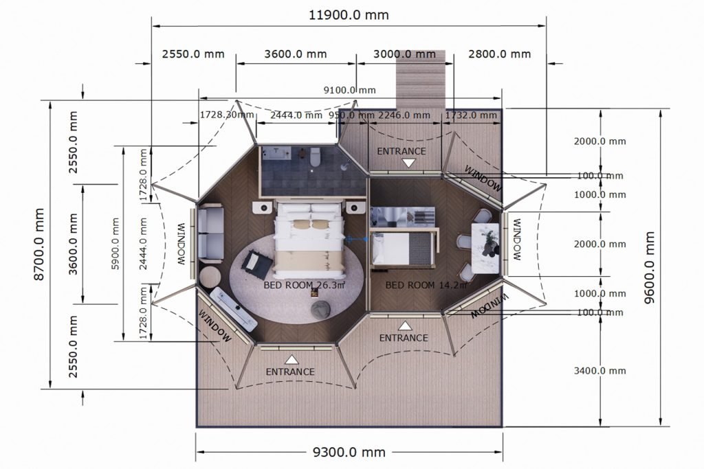 ✔️ Spacious & Versatile: 40㎡ interior (9.1x5.9m) + 5.5m peak height → Perfect for glamping suites, pop-up restaurants, event venues.