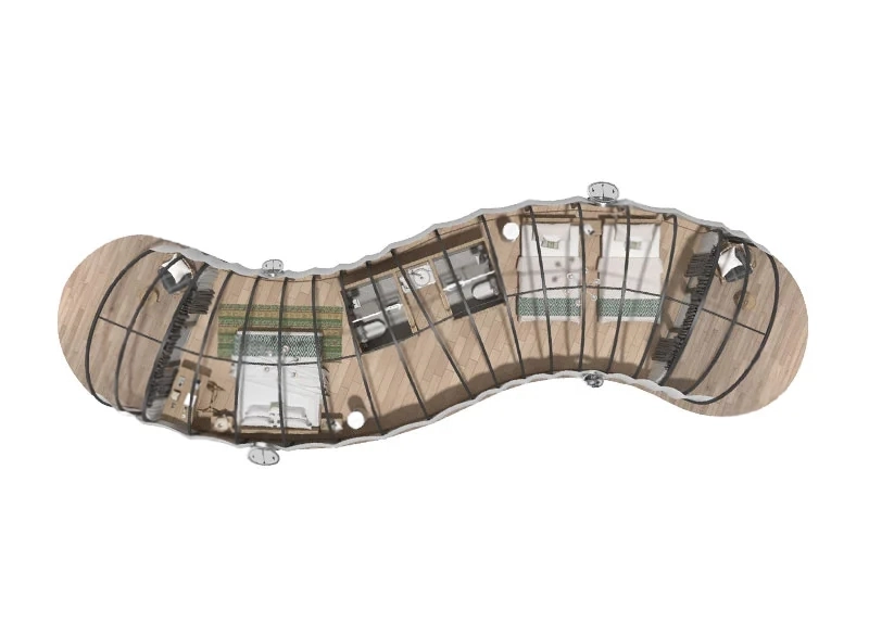 β KEYWORDS: Smart-Zoning Family Tent, Curved Glamping Design