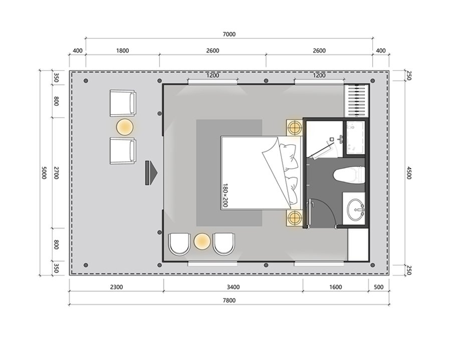 | • Sintered stone shower floor | • 180×200cm king bed |
