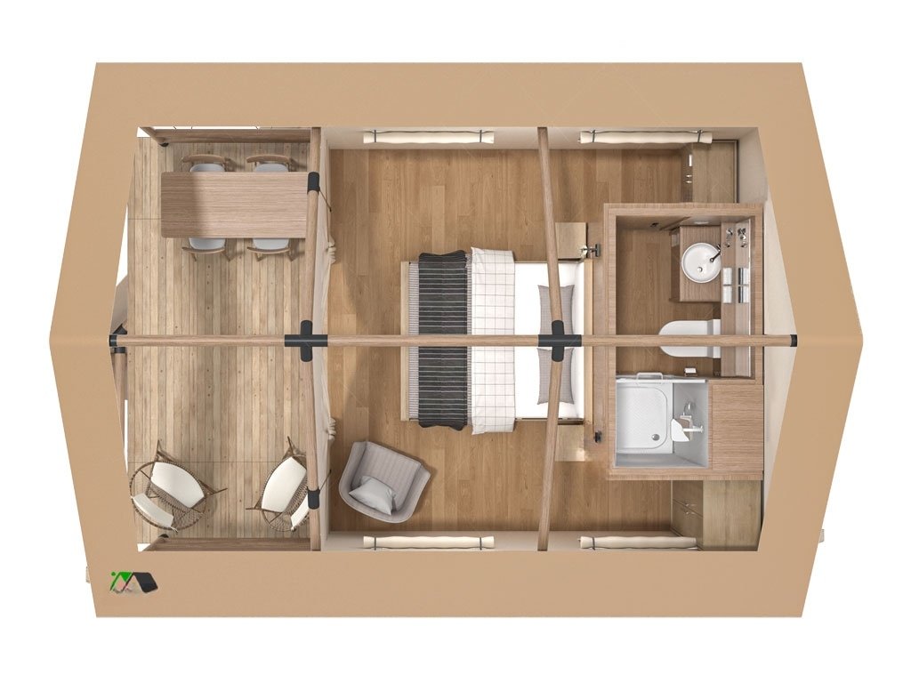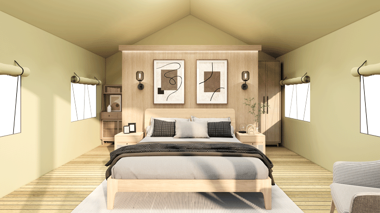 S04 Premium Space-Saving Safari Tent – Steel Frame Lodges for 4 Guests
