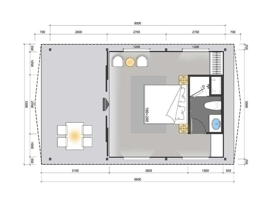 | • Glass Wall System | • 180×200cm king-size bed |