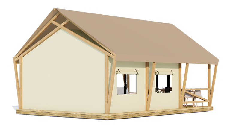 S08 Glamping Safari Tent with Panoramic Glass Front & Front Walls