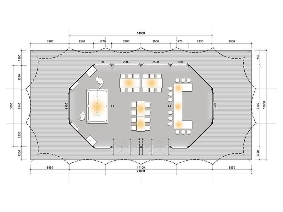 • Expansive design with a projected area of 404.32m², perfect for large groups or family gatherings